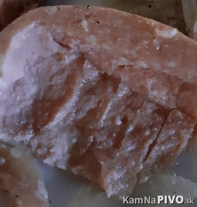 ... špekáčik bol opticky v poriadku, ale štruktúra hmoty pripomínala namletú mäsovú kašu, nepôsobila vôbec chutne, jedine mierne kyslastý nálev a naložená cibuľa a mleté čierne korenie ako tak dodávali chuť na ďalšie sústo, ale aj tak som ho nedojedol, len som "rozvrtal"... základ bol nechutný. Špekáčik, aj keď bol priečne nadrezaný, nebol zbavený črievka, hľadal by som iného dodávateľa, výrobcu. Takže len 1.5/5.