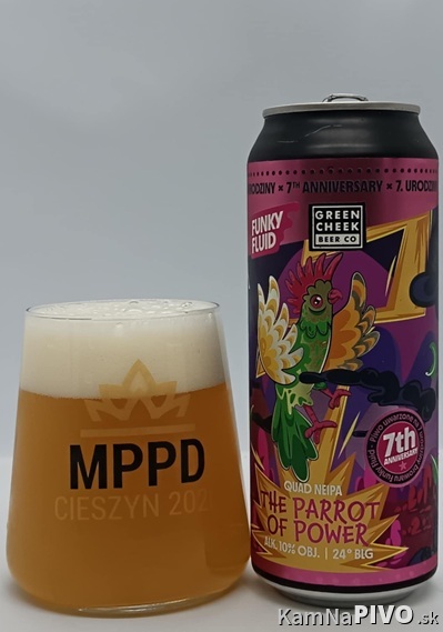Poľský pivovar Browar Funky Fluid (zal. 2018) si na oslavu siedmeho roka existencie pripravil pre svojich fanúšikov v edícii 7th Anniversary / 7. Urodziny aj "silnú, štvornásobnú" Quad NEIPA The Parrot of Power pripravenú v spolupráci s kalifornským pivovarom Green Cheek Brewing Co. (zal. 2017) nachmelenú chmeľovými produktmi Nelson Sauvin, HBC 1019 a Enigma.