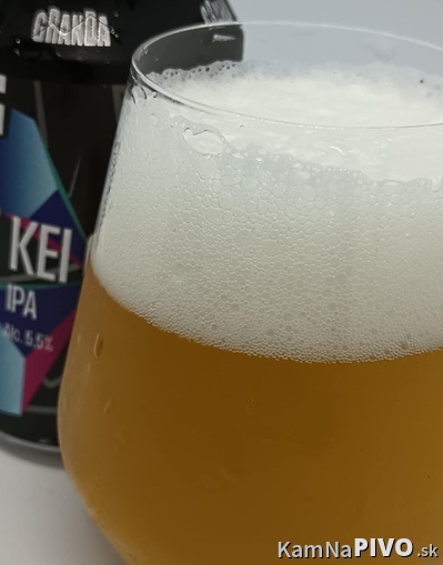 Stredne vysoká pena bielej farby, tvorená drobnejšími bublinkami, stredne hustá, s dobrou retenciou, zanechala mierne mapy.