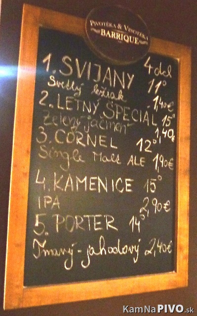 Ešteže na rohu existuje Barrique, taká vinotéka s menšiou/väčšou pivotékou so štyrmi, piatimi pivami na výčape a približne dvadsiatkou fľaškových pív. Na čape sú často pivá z malých a stredne veľkých českých a moravských pivovarov, občas nejaký anglán, nemec,...ale aj Kaltenecker (etc.).