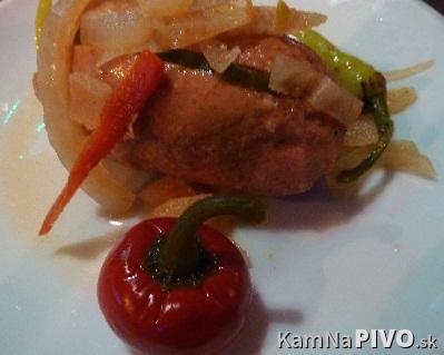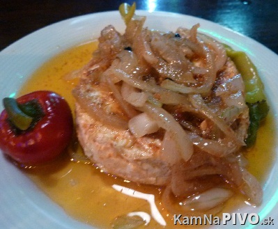 Druhou pivnou pochutinou bol Utopenec (80g, cena: 2,50€), hmm, zdal sa malý, áno gramáž je uvedená, viac mi robil problém "lák" (nálev po slovensky?), to nebol "lák", to bol čistý ocot, s prípravou si to kuchár veľmi zjednodušil, aj samotný špekáčik okrem toho, že bol prekyslený, vhodne vybratý, bol veľmi múčnej chute, tu by som taktiež zvolil iného dodávateľa, takže mi s ním pomohol priateľ, pre mňa dnes úplná katastrofa, nebyť feferónky, baranieho rohu a cibule, tak noč nezjem :(, ani bodovať nemá zmysel a ak tak za mínus.