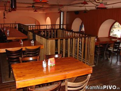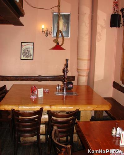 Po vstupe na pravej strane je hlavný výčap (hrubo opracované masívne drevo v kombinácii so starými tehlami), ale aj jeden stôl, kde si môžete pivko aj sami načapovať, kapacita cca 20 miest.