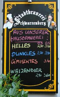 V ten deň som bol v Stadtbrauerei Schwanzenberg prvým hosťom (Das 1 kunčaft in Lokal :))) ), zamestnanci sa ešte len pripravovali prevádzku, pomocník sládka nosil dovnútra dovezený slad. Usadil som sa na pravej strane podniku, tak aby som mal dobrý prehľad na výčap, resp. celý vnútorný priestor.